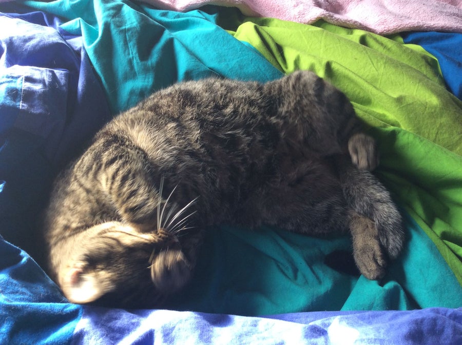 Ik snel de trap weer af want nu moet ik me echt haasten en ik wil het bed nog opmaken . Voor me uit rennen twee gepikeerde katten naar beneden. Ik maak te veel herrie, ik verstoor hun maandagochtend rust. Ze vragen nog net niet of ik iets rustiger kan doen, maar hun blik zegt genoeg.